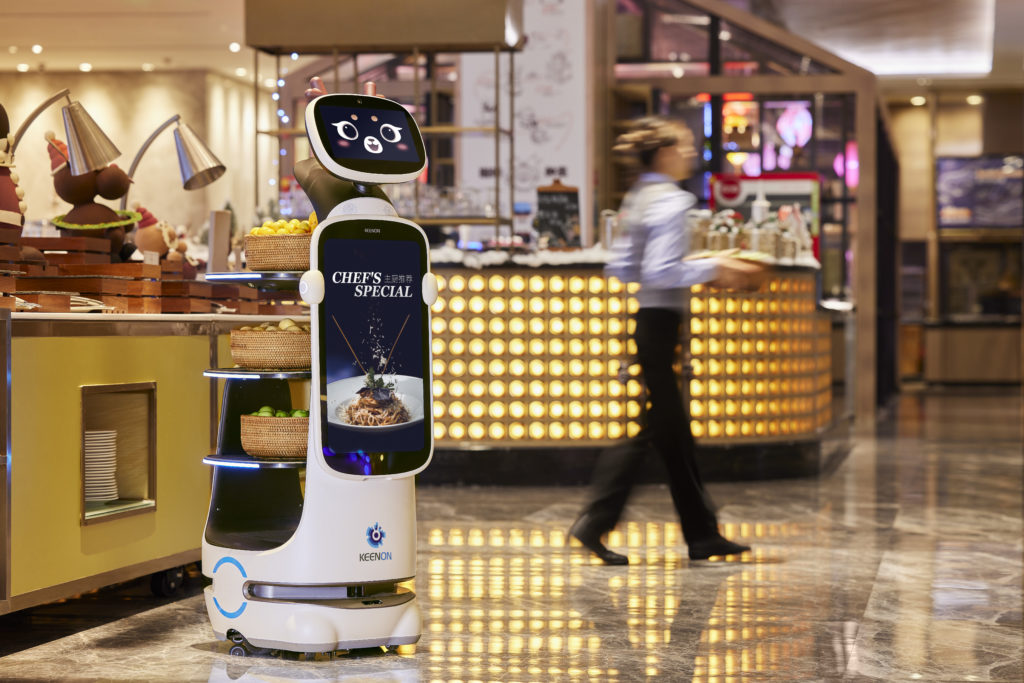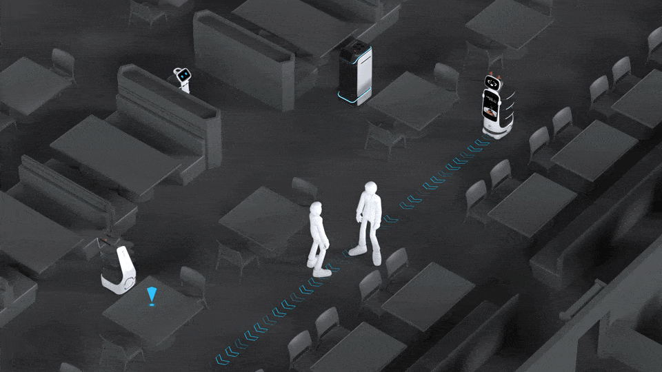 Ich bin ideal für den Einsatz bei Gastronomie, Hotels, Flughäfen und Events, da ich nicht nur Speisen und Getränke transportieren kann, sondern auch Hinweise, Angebote und Werbung.